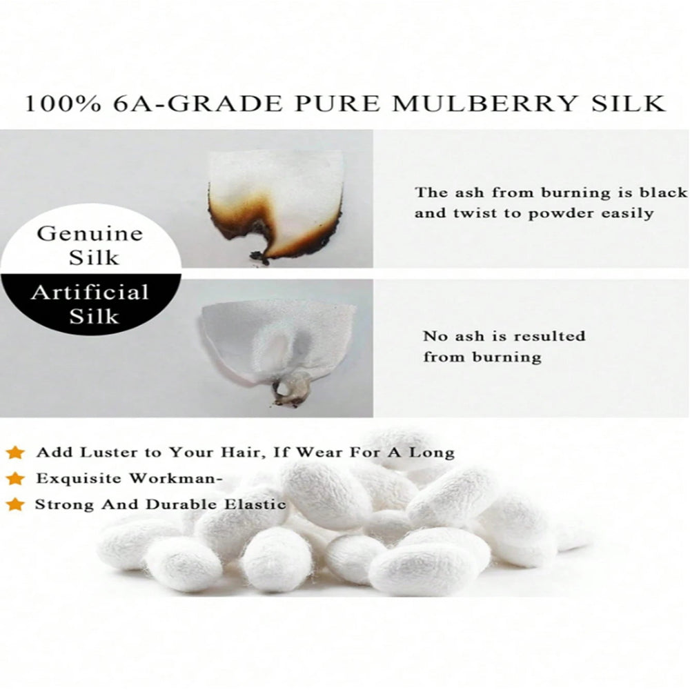 Matière : Soie, offrant une surface lisse qui minimise la casse et la friction des cheveux.