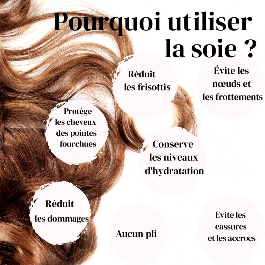 Matière : Soie, proposant une surface lisse pour protéger les cheveux contre les accrocs et la casse.